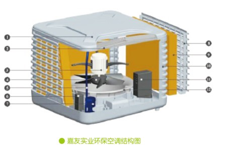 2. 外框为工程塑料压制而成,5090/6090湿帘纸,湿帘纸采用进口乐泰胶水,耐水浸泡,不易脱胶塌陷腐烂使用寿命长,8年以上。3C认证铝壳铜芯电机,强度大三叶扇叶,风量大,噪音小,方形工程塑料风管。